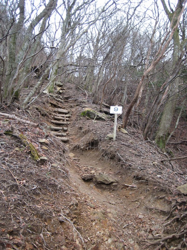 頂上までに1から9まで(10が頂上に当たる)の立て札があるなど、よく整備されている。